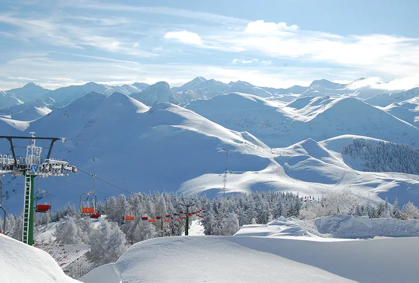 Part of the Mondolé ski area, Prato Nevoso is one of our favourite destinations for school ski trips, especially at Easter. Still relatively undiscovered by British tourists, you get a real flavour of Italy here, alongside a warm, friendly welcome and quieter atmosphere.